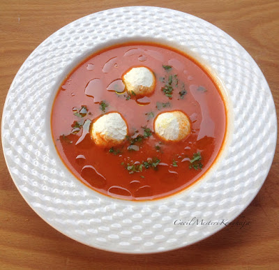 Sült paprika krémleves joghurt golyóval