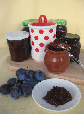 Néhány éve nem tettem el szilvalekvárt. Idén viszont úgy döntöttem, hogy megint készítek, mert tavaly horror áron(1600 Ft/kg) vásároltam mindig a buktába való sűrű, vágható szilvalekvárt. Az pedig tudnivaló, hogy buktába az, az igazi.Hozzávalók, ahogyan készítettem:6 kg besztercei szilva2-3 evőkanál 10%-os ecet2 db nagyobb méretű, magas falú tepsiLényeges, hogy a sütőben készítéshez a nagy szemű szaftos szilva nem jó, mert nagyon soká főne el a leve. A besztercei szilva apró szemű, elég volt kimagozni, széttépni. A tepsiket ecettel kikentem és szétterítettem az elfelezett szilvahúst. A sütőt légkeveréssel működtettem, jól bemelegítettem 200C◦-on. Amikor betettem a két tepsit, 150C◦-ra mérsékeltem. Ezen a hőfokon addig tartottam, amíg felforrt, akkor tovább mérsékeltem 120C◦-ra. Óránként óvatosan megkevertem, hogy egyenletesen „száradjon”. Eleinte kicsi rést, mondjuk hurkapálcikával kitámasztva, érdemes hagyni, mert rengeteg gőz képződik. 3-3,5 óra alatt készült el. Egyébként nem fut ki, nem puffog, semmi veszélyes dolgot nem művel a szilva, csak szép lassan sűrűsödik, hogy végül olyan sűrűvé és édessé váljon mintha üstben főzték volna egy napig. A héten két adagot főztem. Nem kell robotolni, passzírozni, szépen szétfő. Készítettem úgy is, hogy hagytam egy kis levét is, akkor fejre lehet állítani az üveget, hogy legyen vákuum, akár ki lehet dunsztolni. Szerintem nem nagyon van erre szükség, olyan sűrűre főztem, hogy kanállal kellett tunkolgatni az edényekbe. Kár, hogy nincs elég csuprom, mint ez a csinos pöttyös. A befőzött szilvalekvár árával kapcsolatban végeztünk némi számítást. 160 Ft volt kilója a szilvának, a 6 kg ára 960 Ft. A főzés után 2 kg lett a szilvalekvár. Az áramfogyasztással együtt nagyjából 650 Ft-ra jön ki kilója. Nos, úgy tűnik, megéri.